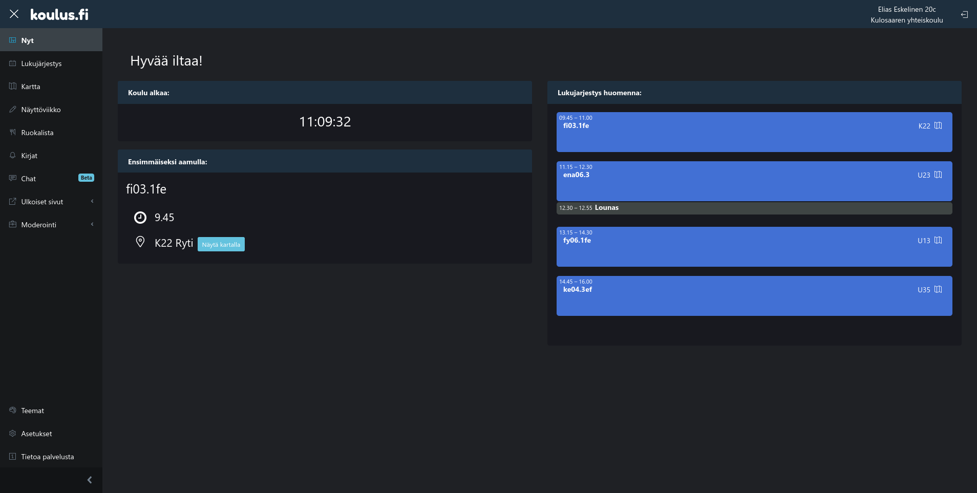 Kokoaa yhteen hyödyllistä tietoa ksykin opiskelijoille, sisältää lukkarit, ruokalistat, kartan koulusta, seuraavan jakson kirjat, yms. Työskentelin – ja työskentelen – enimmäkseen jäljellä olevien virheiden korjaamisessa, sillä projekti oli jo melko valmis kun tulin mukaan. Backend nodejs/express, frontend Reactilla.